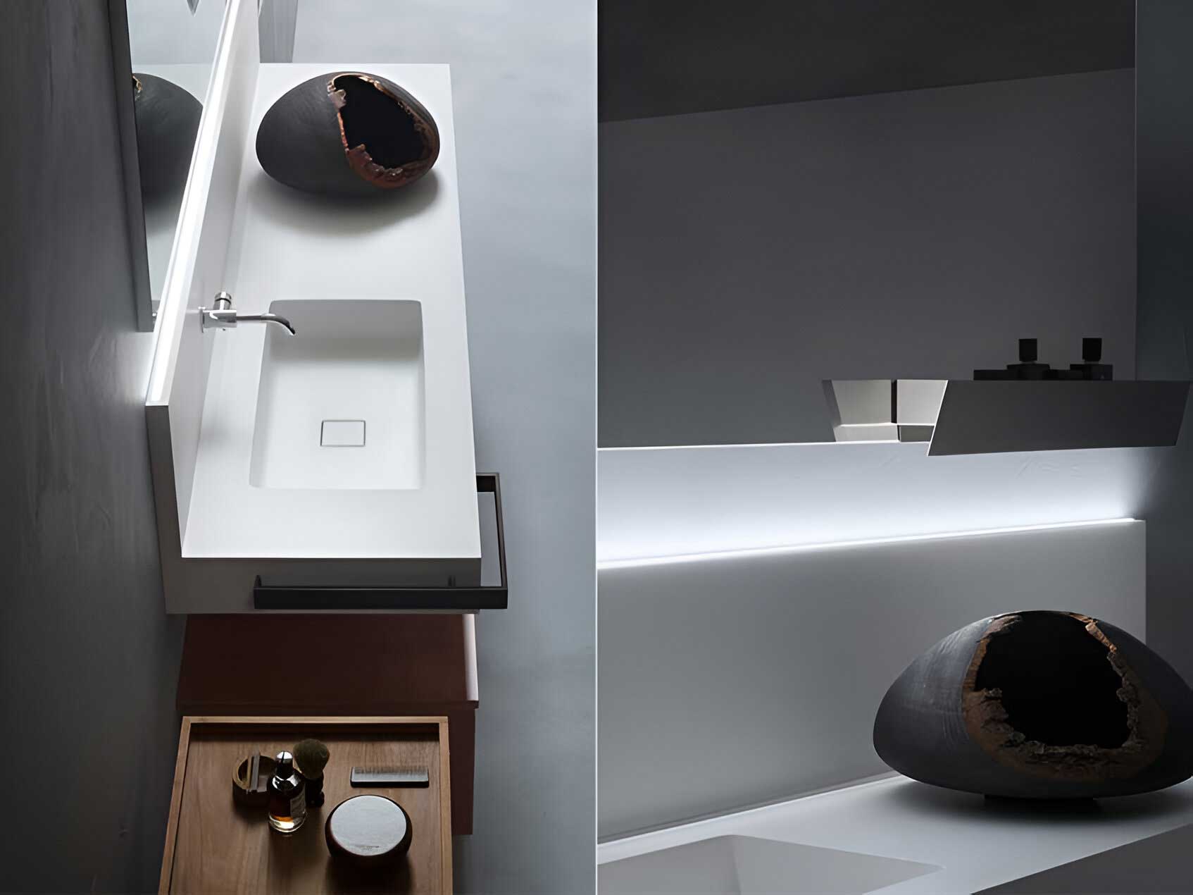 Pour chaque projet, nous exploitons chaque centimètre disponible de vos espaces intérieurs afin de maximiser l’utilisation de l’espace. C’est pourquoi nous collaborons avec des fournisseurs rigoureusement sélectionnés pour la qualité de leurs matériaux, essentiels dans l’agencement des salles de bains où les matériaux doivent être à la fois esthétiques et capables de résister à l’humidité.